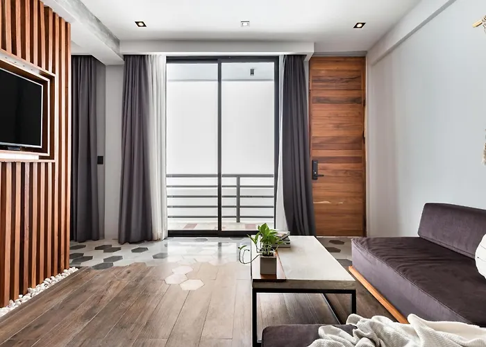Situado a aproximadamente 5 minutes a pé de Iglesia de Nuestra Señora del Carmen, o Leaf Boutique Condos Playa del Carmen de 56 m² oferece aos hóspedes Wi-Fi para negócios ou lazer. Este apartamento de 1 quartos está situado muito perto do Quinta Avenida e oferece serviços de lavandaria.